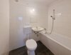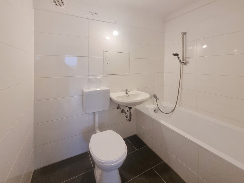 - Anthrazite Boden- und weiße Wandfliesen im Bad