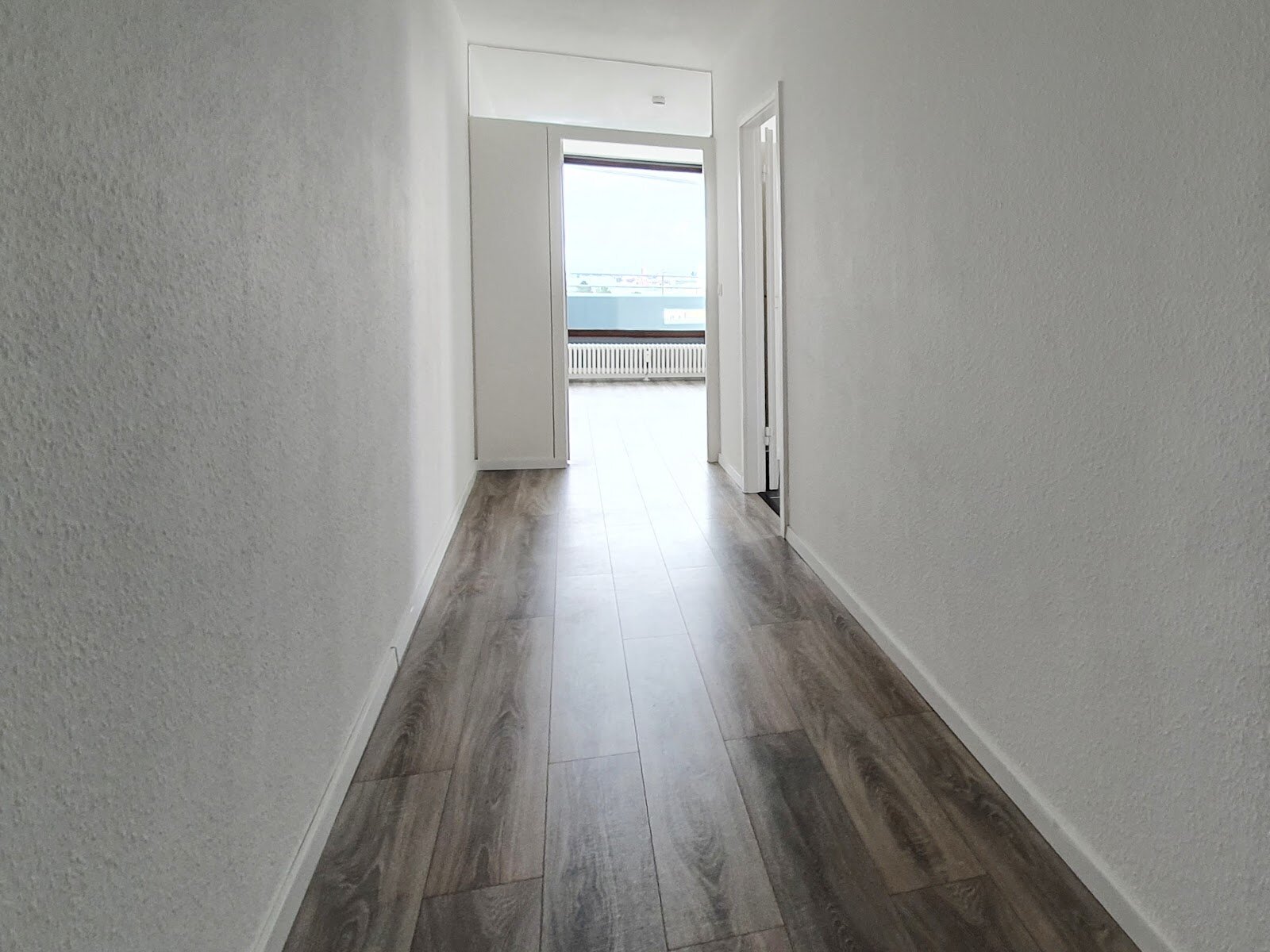- Laminat-Bodenbelag und Raufasertapete in den Wohnräumen