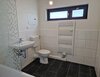- Anthrazite Boden- und weiße Wandfliesen im Bad