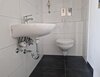 - Anthrazite Boden- und weiße Wandfliesen im Bad