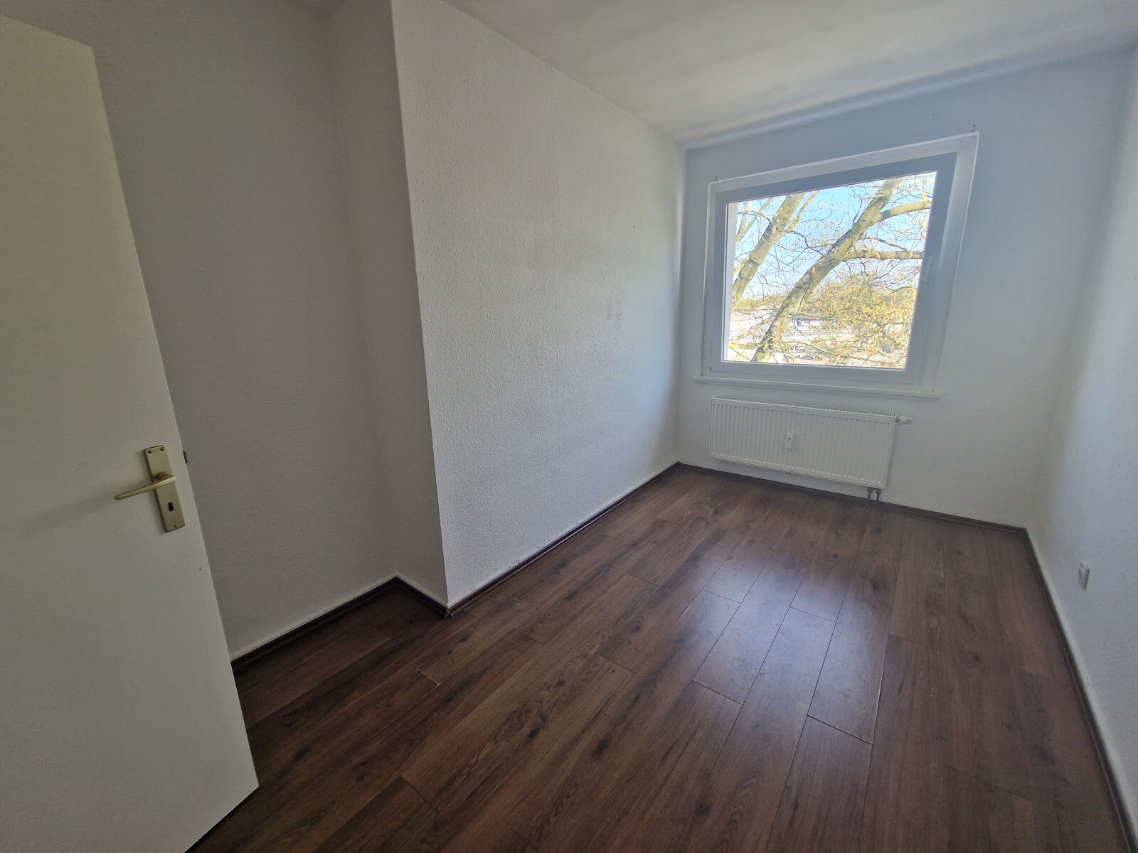 - Laminat- Bodenbelag und Raufasertapete in den Wohnräumen