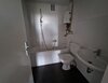 - Anthrazite Boden- und weiße Wandfliesen im Bad