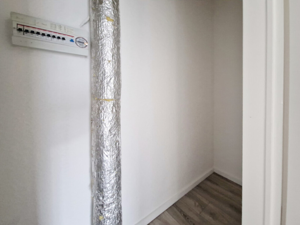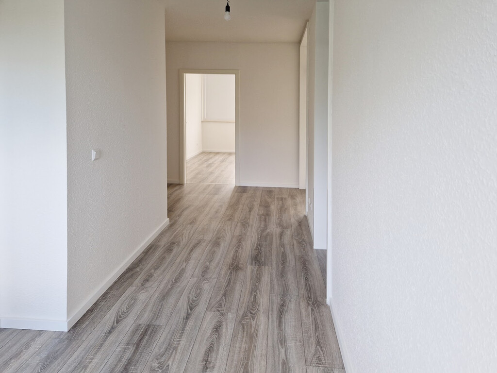 - Laminat- Bodenbelag und Raufasertapete in den Wohnräumen
