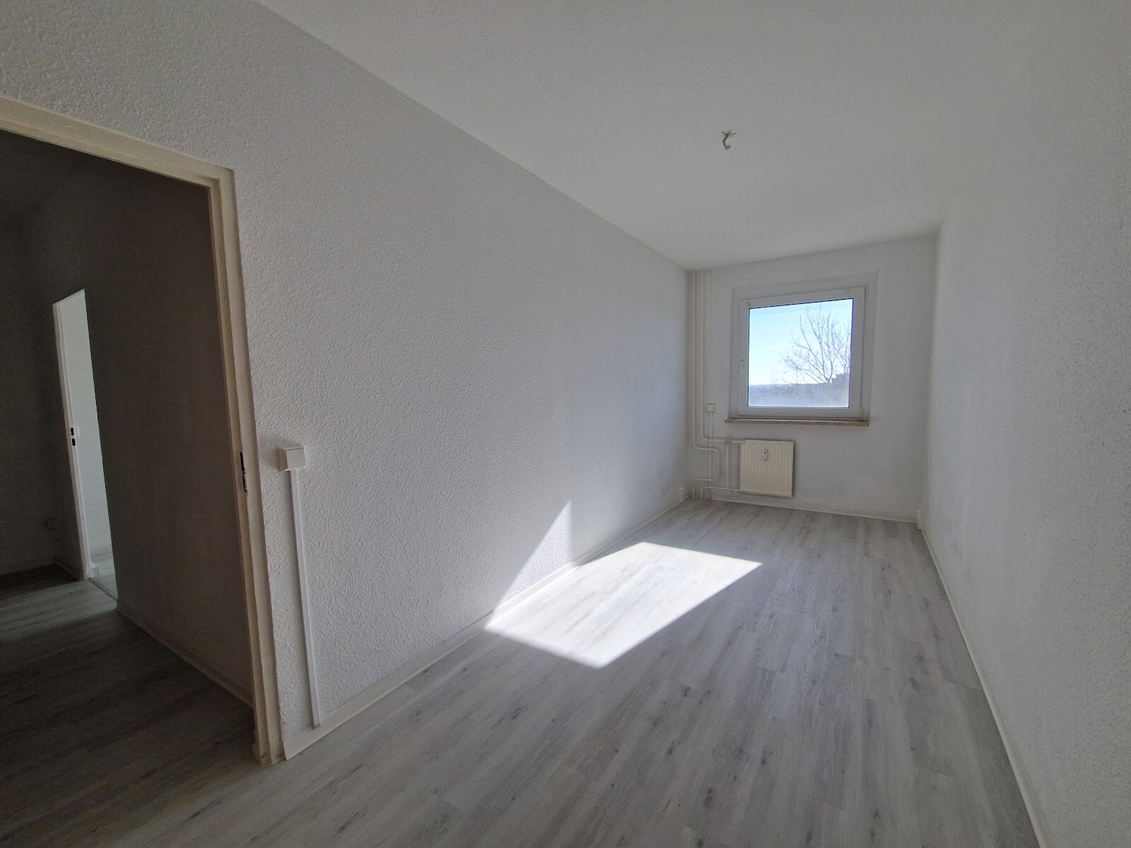 - Laminat- Bodenbelag und Raufasertapete in den Wohnräumen