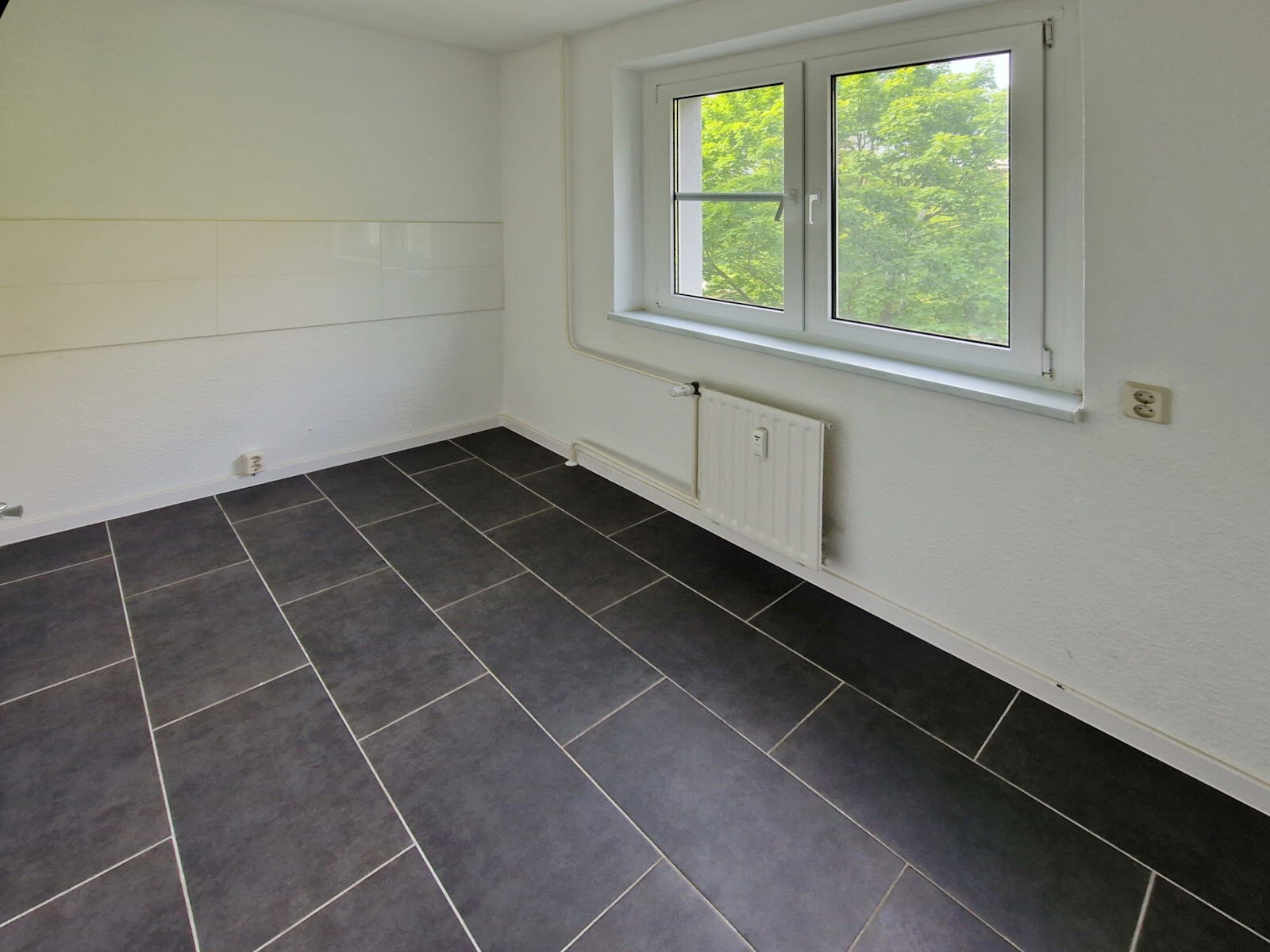 - PVC- Bodenbelag und Raufasertapete in den Wohnräumen