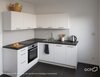 - Anthrazite Boden- und weiße Wandfliesen in der Küche