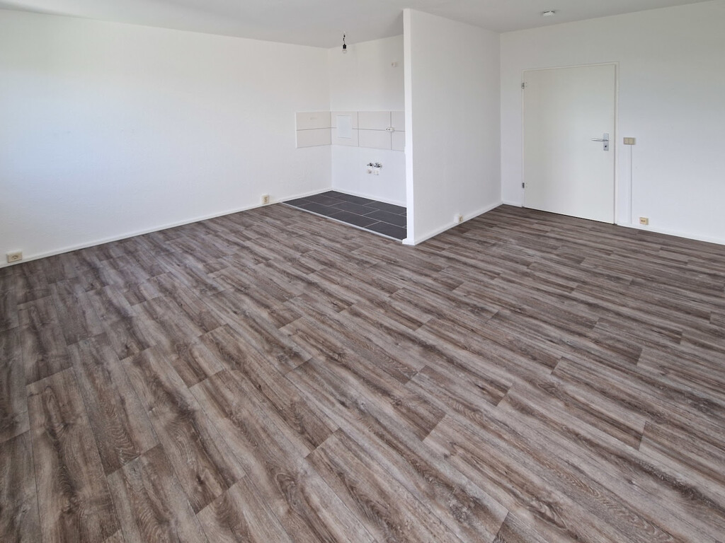 - PVC- Bodenbelag und Raufasertapete in den Wohnräumen