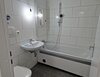 - Anthrazite Boden- und weiße Wandfliesen im Bad