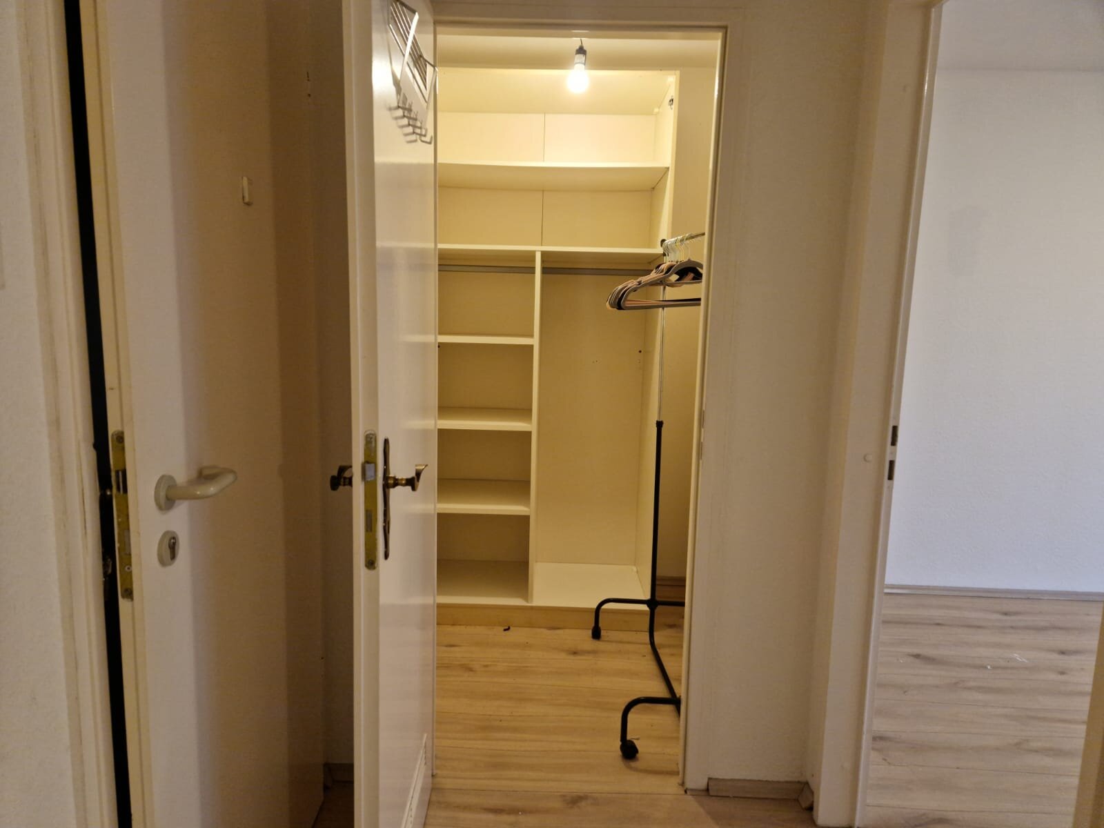 - Laminat- Bodenbelag und Raufasertapete in den Wohnräumen