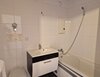 - Anthrazite Boden- und weiße Wandfliesen im Bad