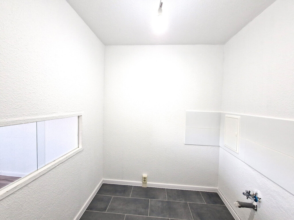 - PVC- Bodenbelag und Raufasertapete in den Wohnräumen