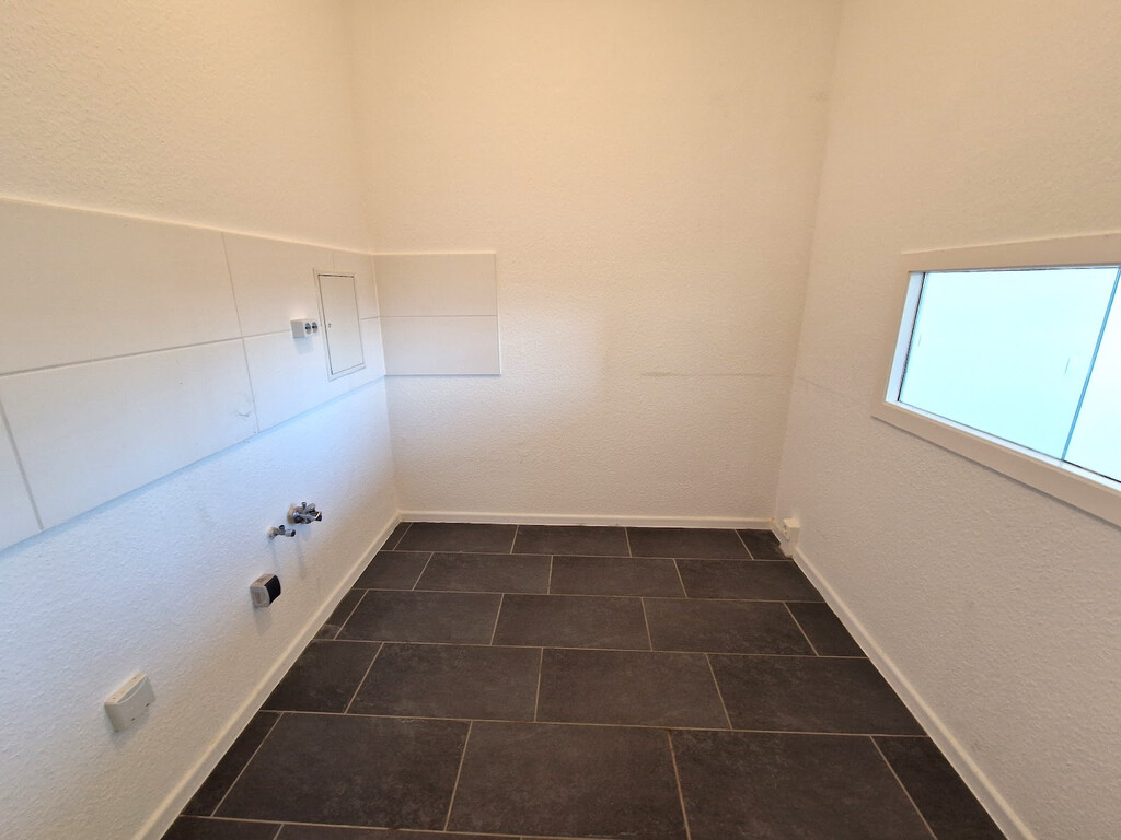 - Laminat/PVC- Bodenbelag und Raufasertapete in den Wohnräumen