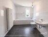 - Anthrazite Boden- und weiße Wandfliesen im Bad