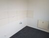 - Anthrazite Boden- und weiße Wandfliesen in der Küche
