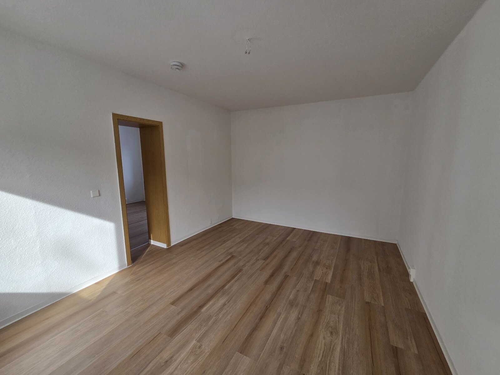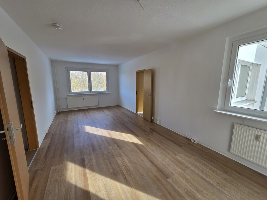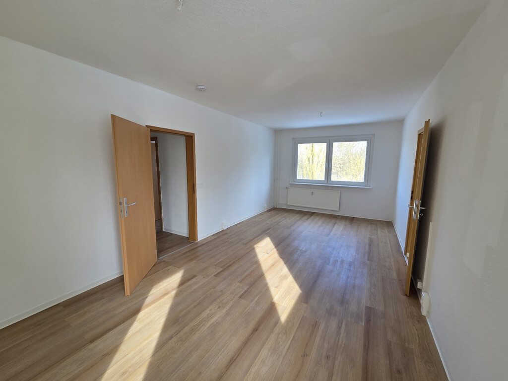 - Laminat- Bodenbelag und Raufasertapete in den Wohnräumen