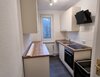 - Anthrazite Boden- und weiße Wandfliesen in der Küche