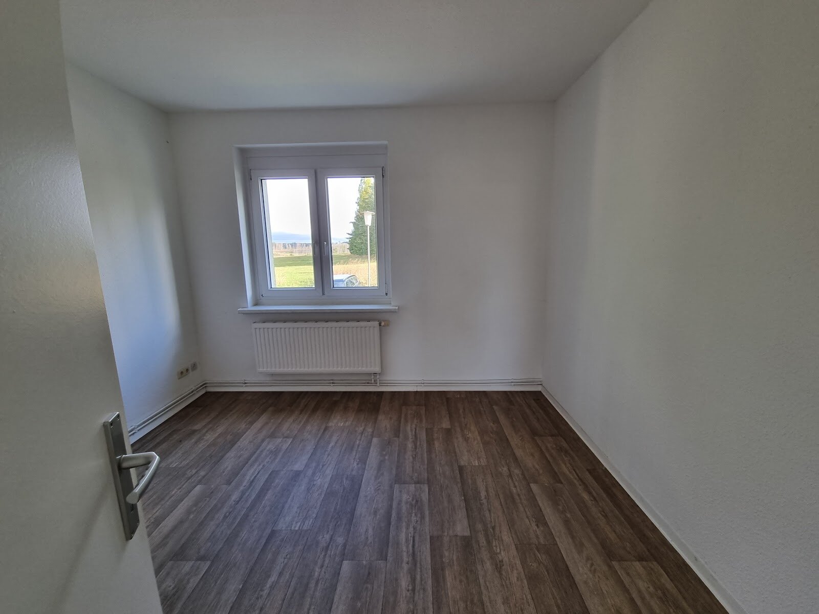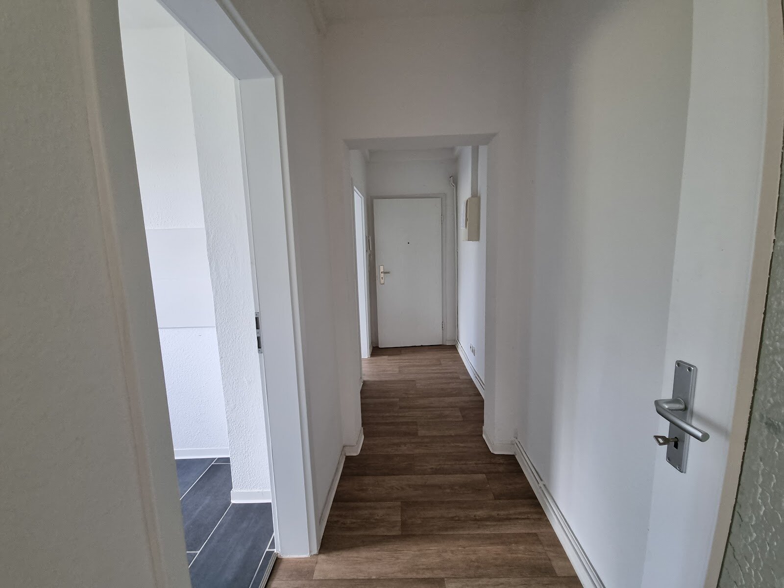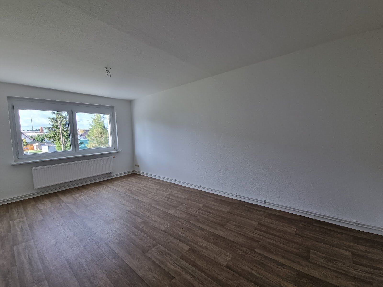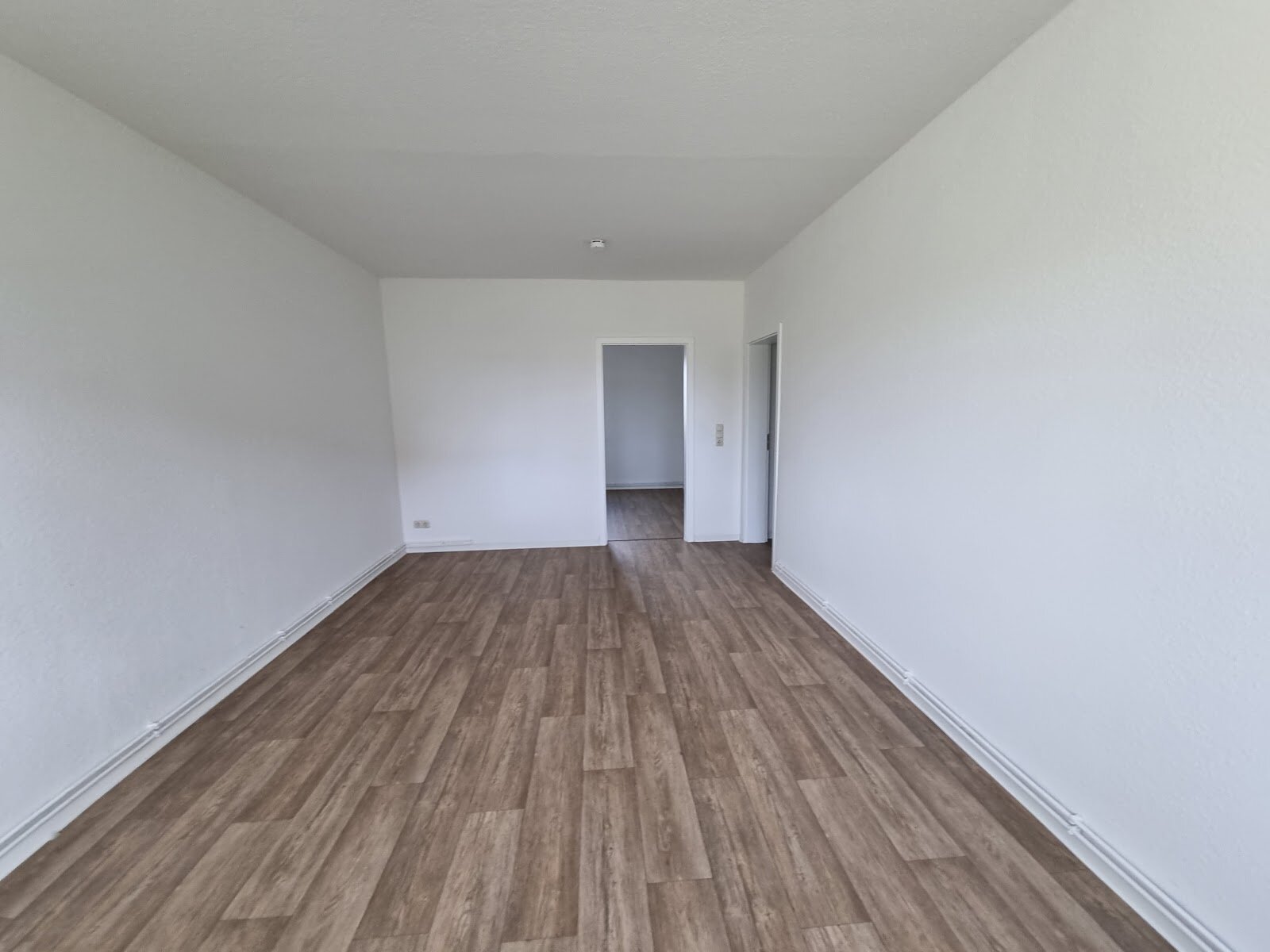 - Laminat- Bodenbelag und Raufasertapete in den Wohnräumen