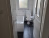 - Anthrazite Boden- und weiße Wandfliesen im Bad