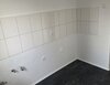 - Anthrazite Boden- und weiße Wandfliesen in der Küche