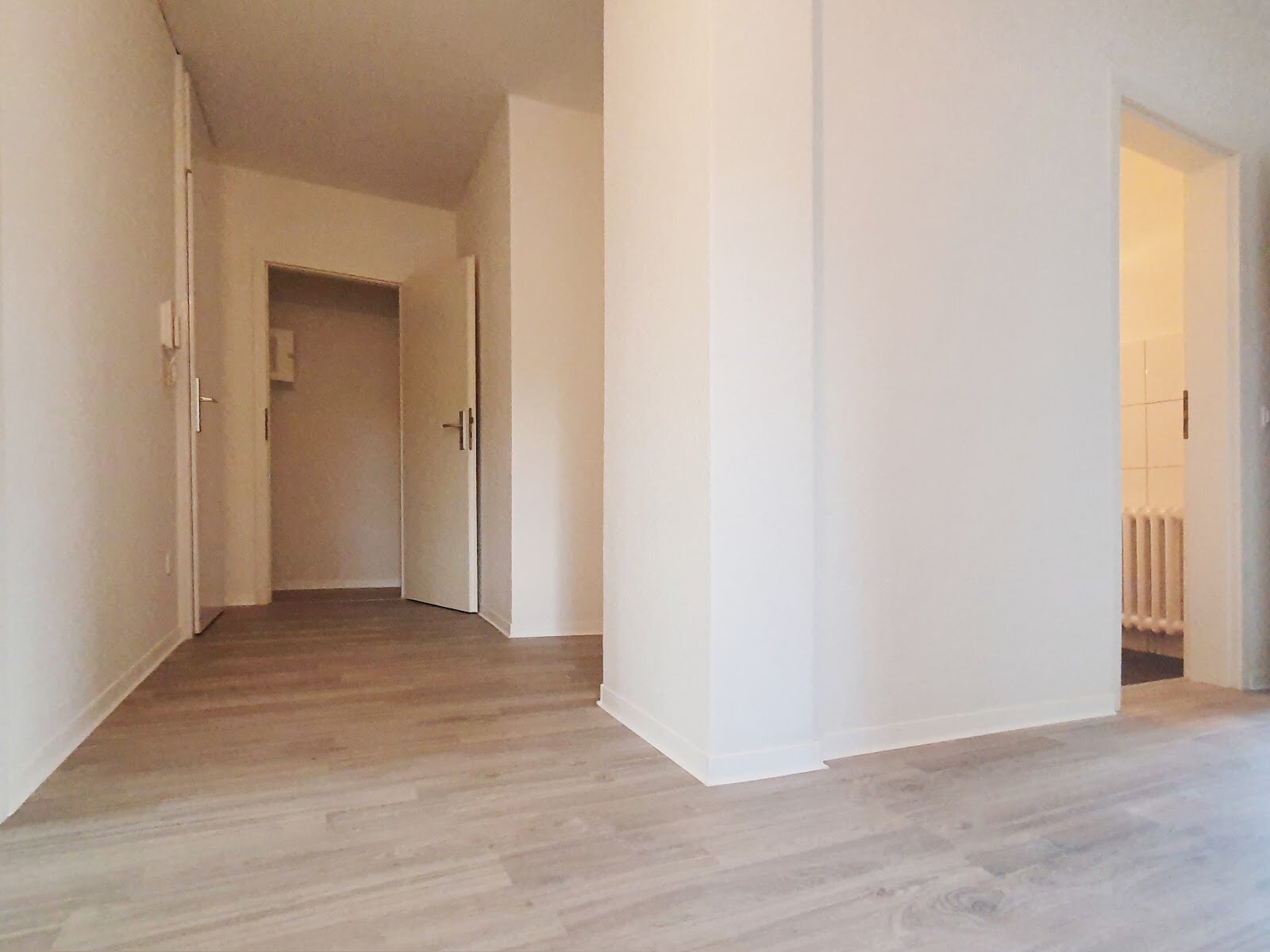 - Laminat- Bodenbelag und Raufasertapete in den Wohnräumen
