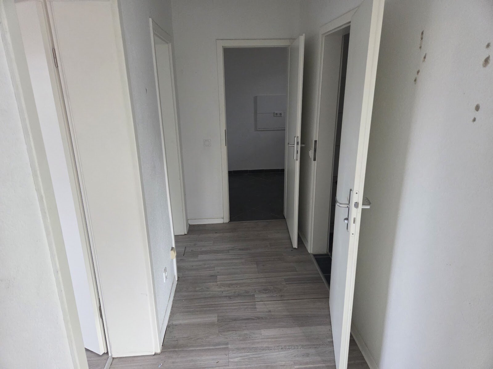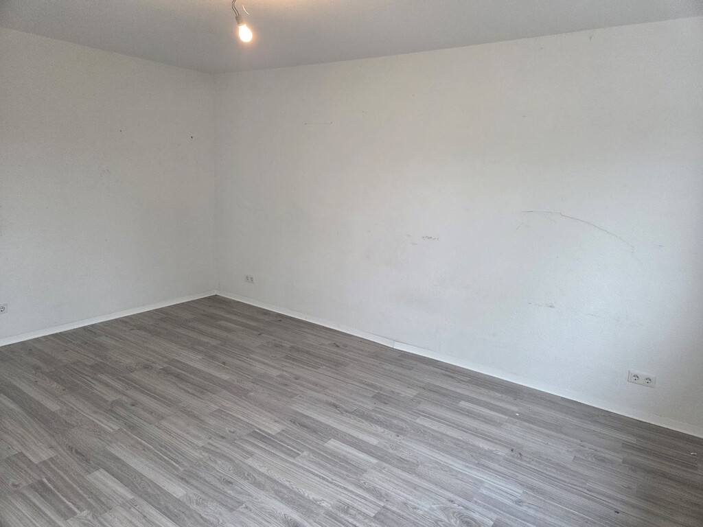 - Laminat/PVC- Bodenbelag und Raufasertapete in den Wohnräumen