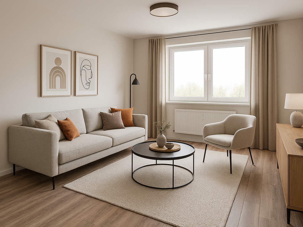 - Die in der Anzeige verwendeten Fotos können Beispielfotos oder KI-generierte Visualisierungen (Kennzeichnung mit „virtually staged“) sein, die der besseren Veranschaulichung der Immobilie dienen und von den tatsächlichen Gegebenheiten abweichen können.