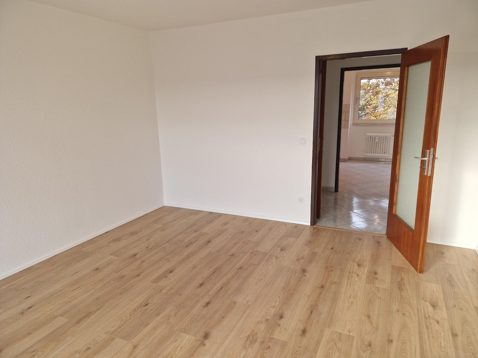 - Laminat/PVC- Bodenbelag und Raufasertapete in den Wohnräumen
