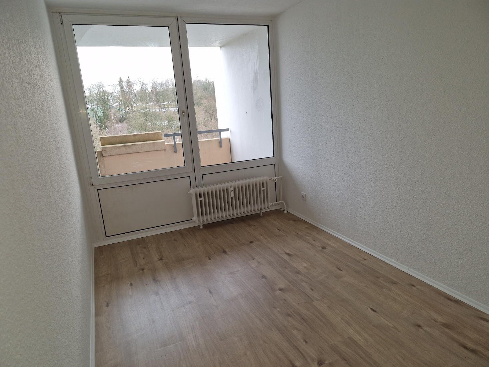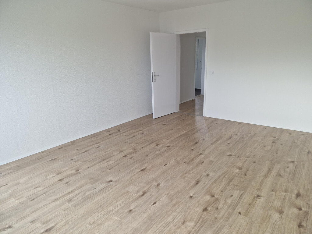 - Laminat- Bodenbelag und Raufasertapete in den Wohnräumen