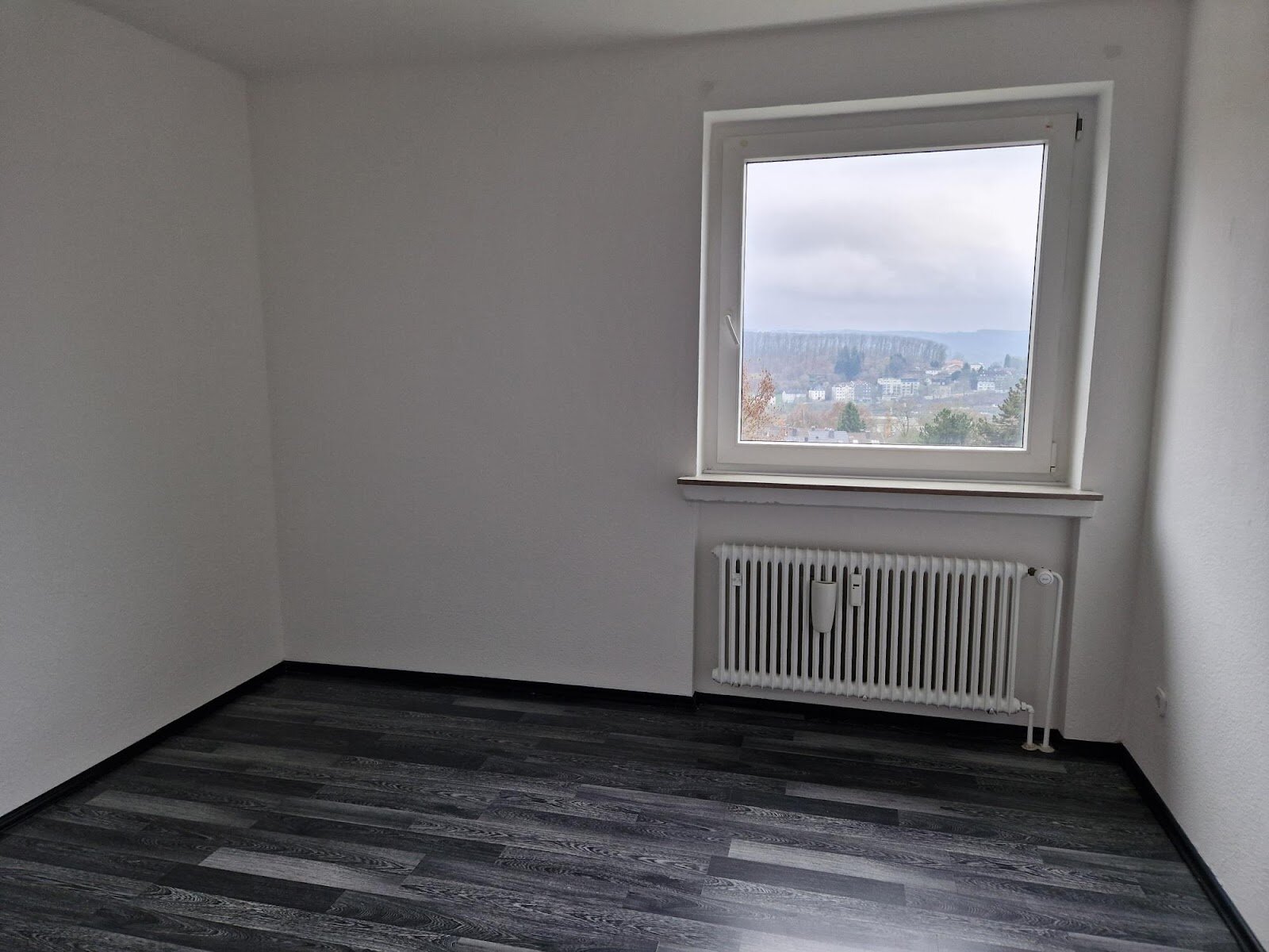 - Laminat/PVC- Bodenbelag und Raufasertapete in den Wohnräumen