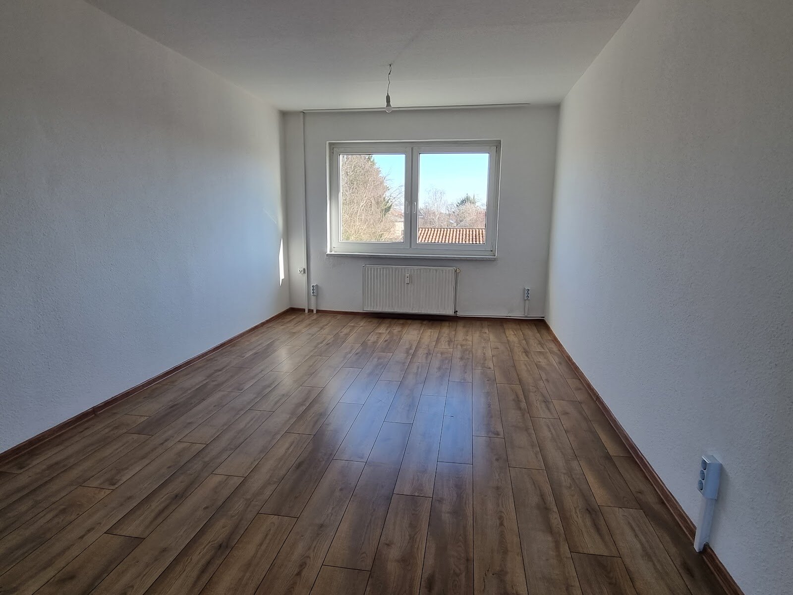 - Laminat - Bodenbelag und Raufasertapete in den Wohnräumen